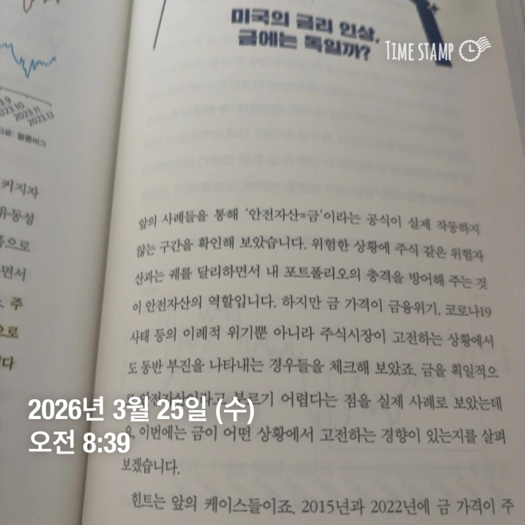 >>2가지 포인트가 조금 인상 깊었는데, 실제로 금리 인하로 인해 유동성이 늘어나면서 금 값이 오르지 않는 시기도 있었다는 것이다. 그리고 책에서는 금값과 금리와의 상관관계를 보기 위해 미국 금리 자료를 가져온 점이다. 유동성이라는 것이 금리라는 것 뿐만 아니라 심리적요인도 중요할 수도 있겠다라고 생각이 들었다. 그리고 미국의 금리가 다른 나라의 금리나 유동성에도 영향을 줄 수 있어서 미국의 금리 변화도 유의깊게 보게 되는구나러고 느꼈다.