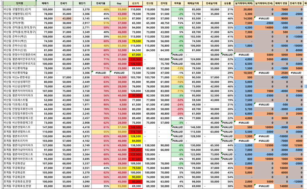호계동은 평촌내의 학원가 근처단지들은 여전히 실거래가 대비 적게는 2~3천 이상 많게는 1억가까이 높은 상태이다.