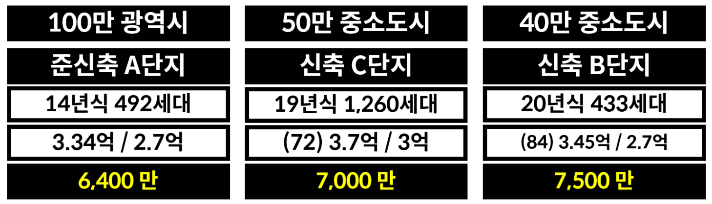 5천만원 투자금으로 제가 지방 투자 후보 단지는 3개였습니다.