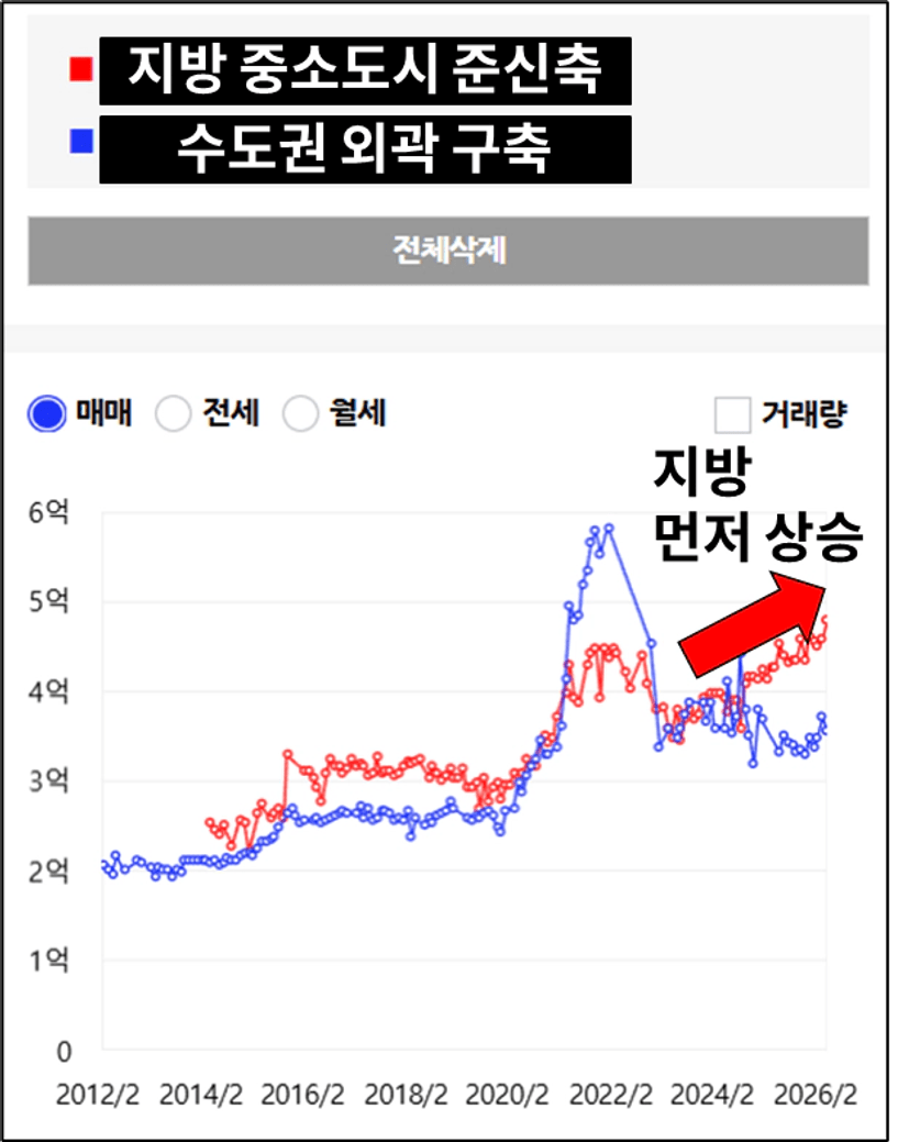 지방보다 상당히 늦게 오르는 단지인 경우가 많습니다.