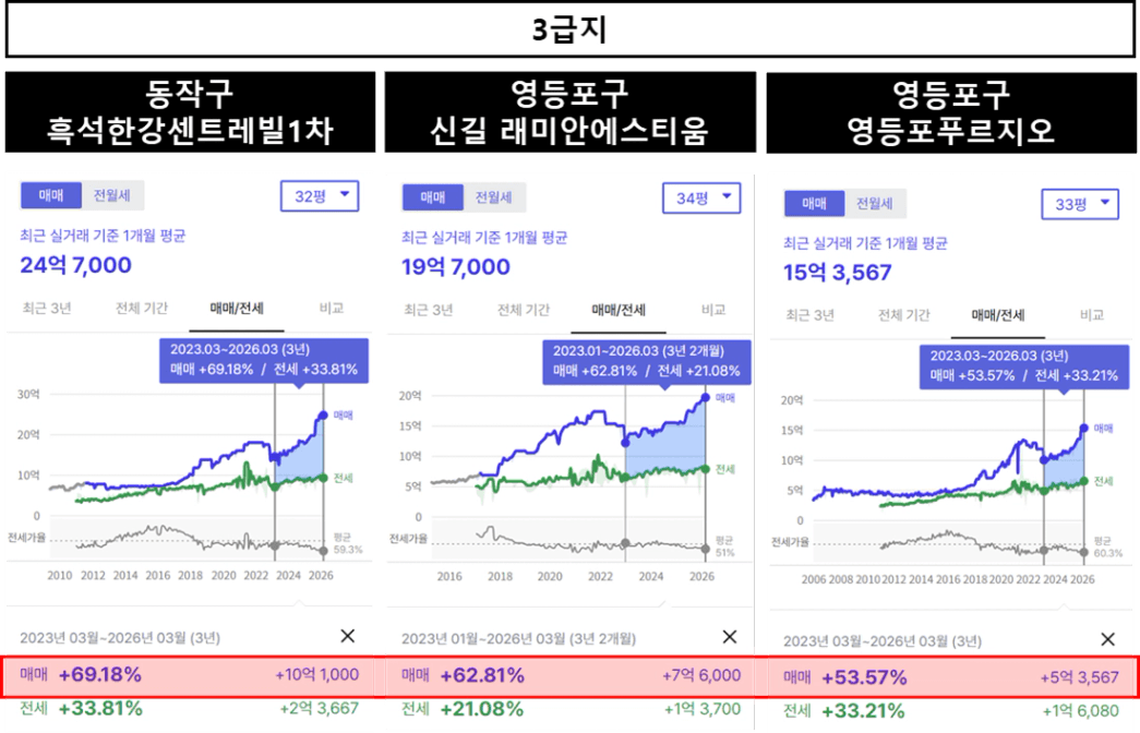 이 흐름은 2~3급지에서도 마찬가지입니다.