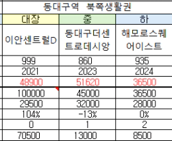 대구 동구 동대구역 북쪽 생활권은 59타입은 전체적으로 전세수요가 그리 많지 않은 것 같다.