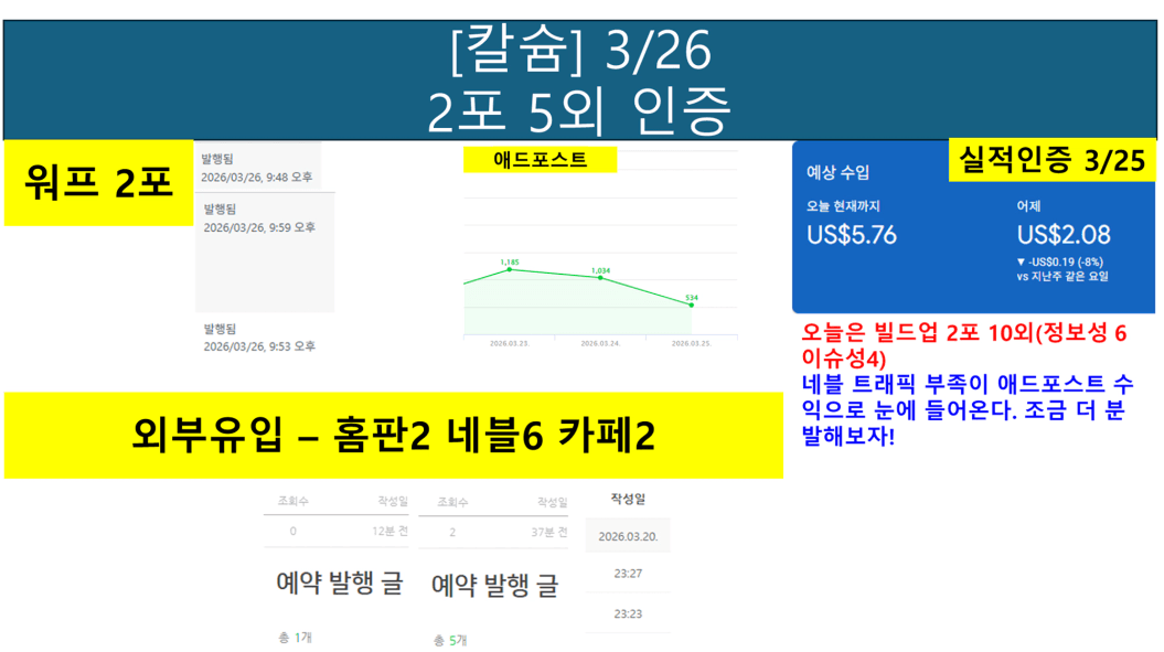카페, 홈판, 네블 등 어제 적용하기로한 외부유입을 적용하니 시간이 생각보다 오래걸렸다.