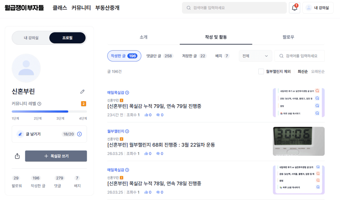 매일 월부 방문 및 좋은 글 정독과 댓글남기기 챌린지댓글 수 279개