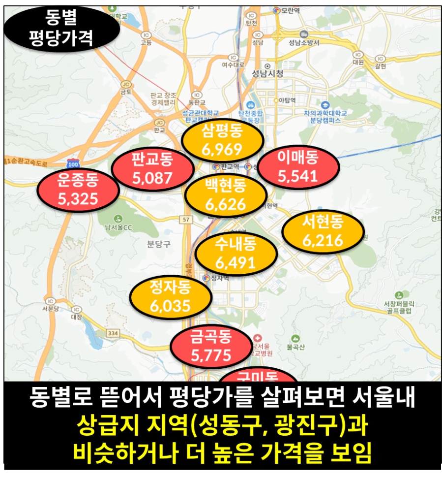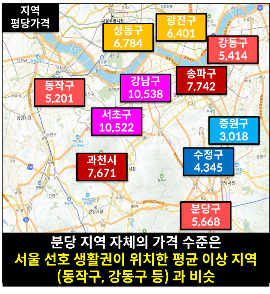 이렇듯 생활권별로 살펴보면 분당과 판교는