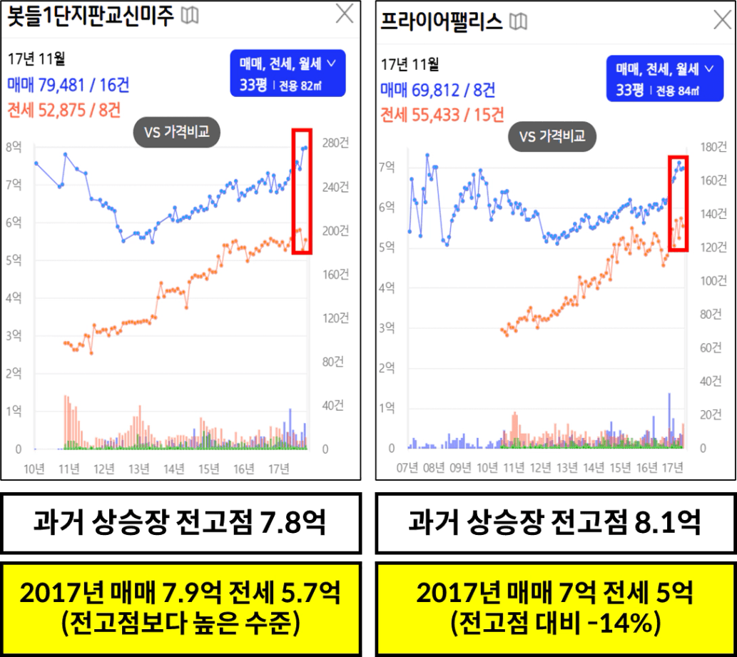 2017년 매매 7.9억으로 지난 전고점보다 높은 가격이었어요.