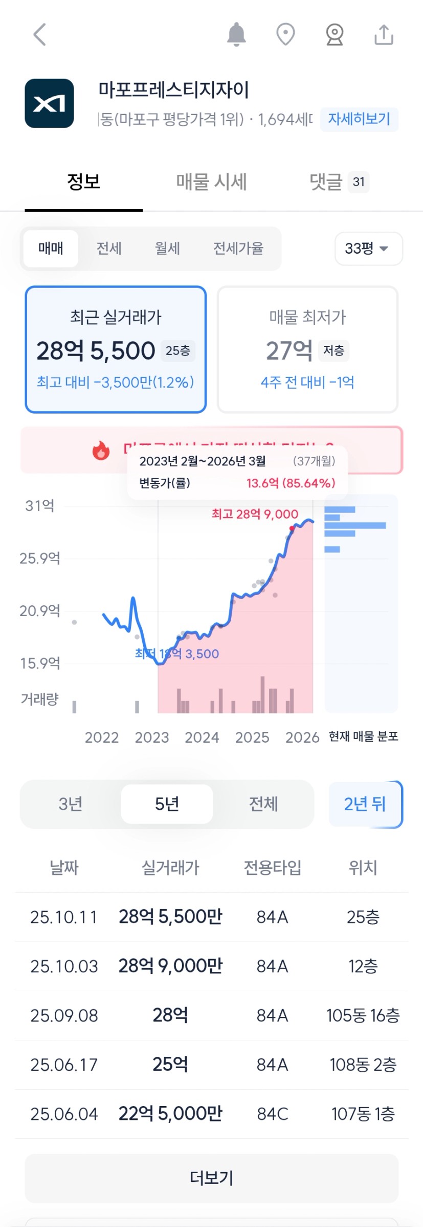 마포 마클자 28.5억⬇️ 너무 비싸다..