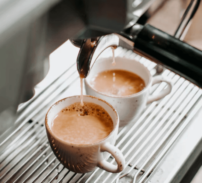 꿀과 연한 커피를 마셔요.
