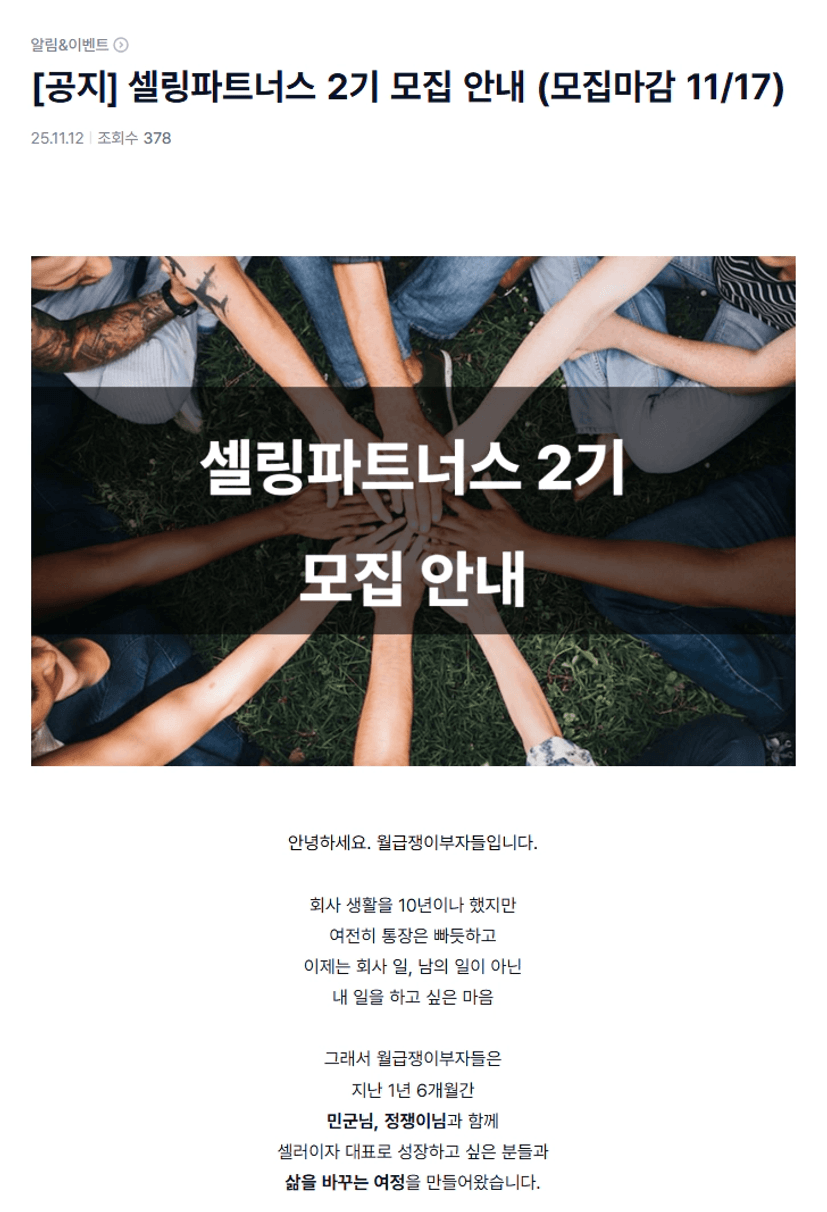 중급반이 끝나고, 셀링파트너스2기 모집 공지를 보게 되었습니다.