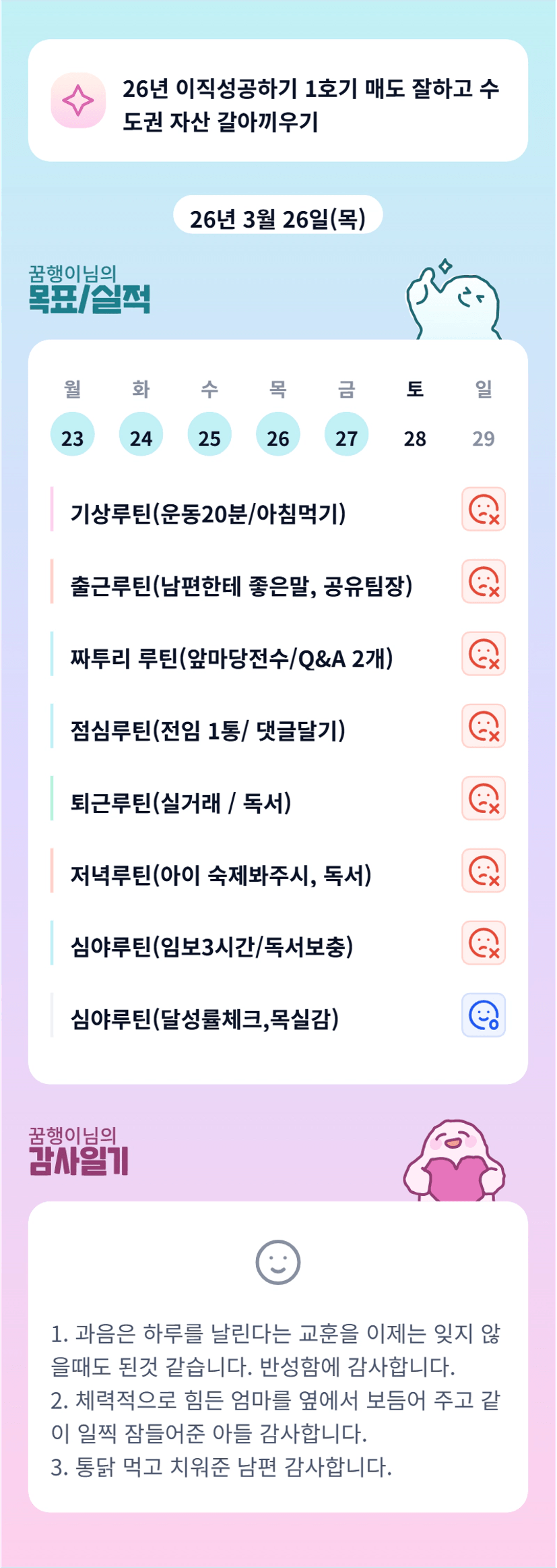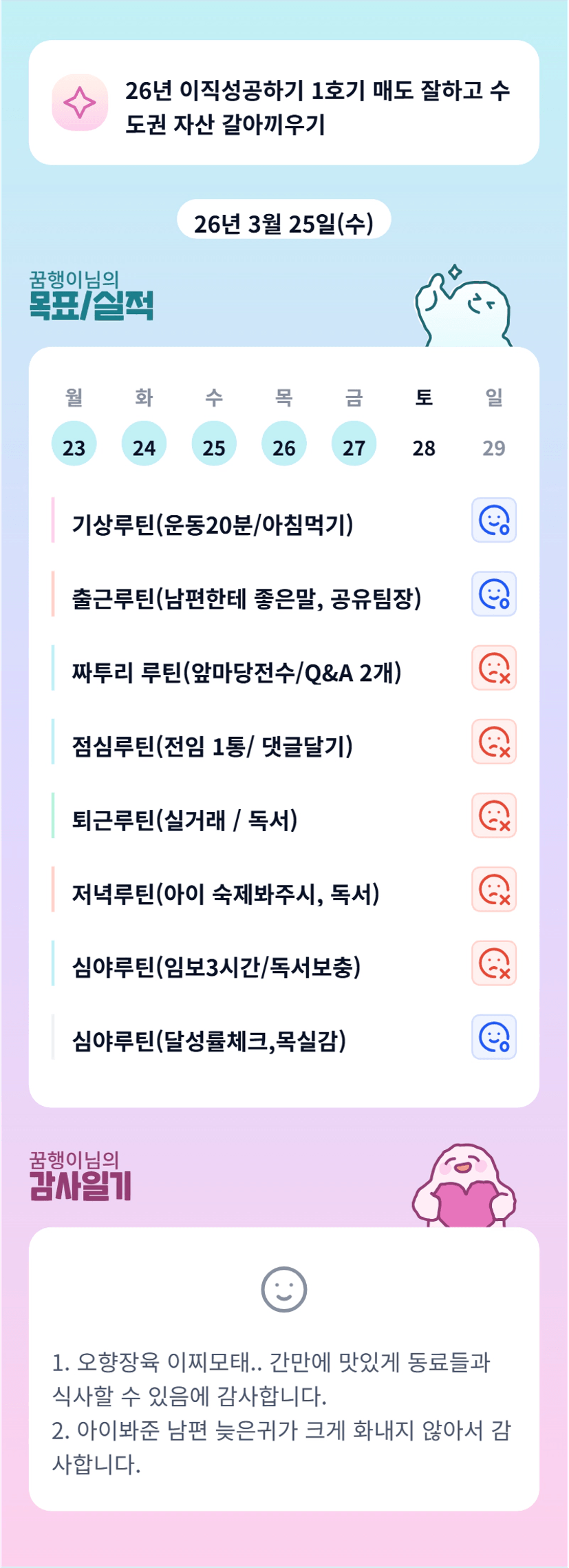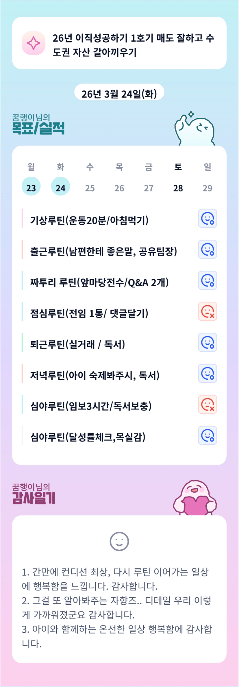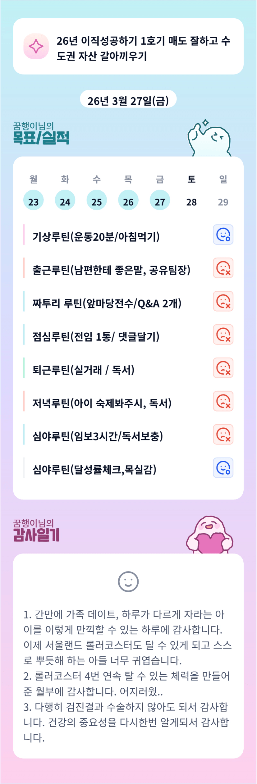 캬! 월학 끝나고 갖는 달콤한 휴식시간이 눈에 확 들어오네요 꿈행님ㅎㅎㅎ💜 쉴때쉬고 거침없이 달리는 그녀…..파이팅!!!!