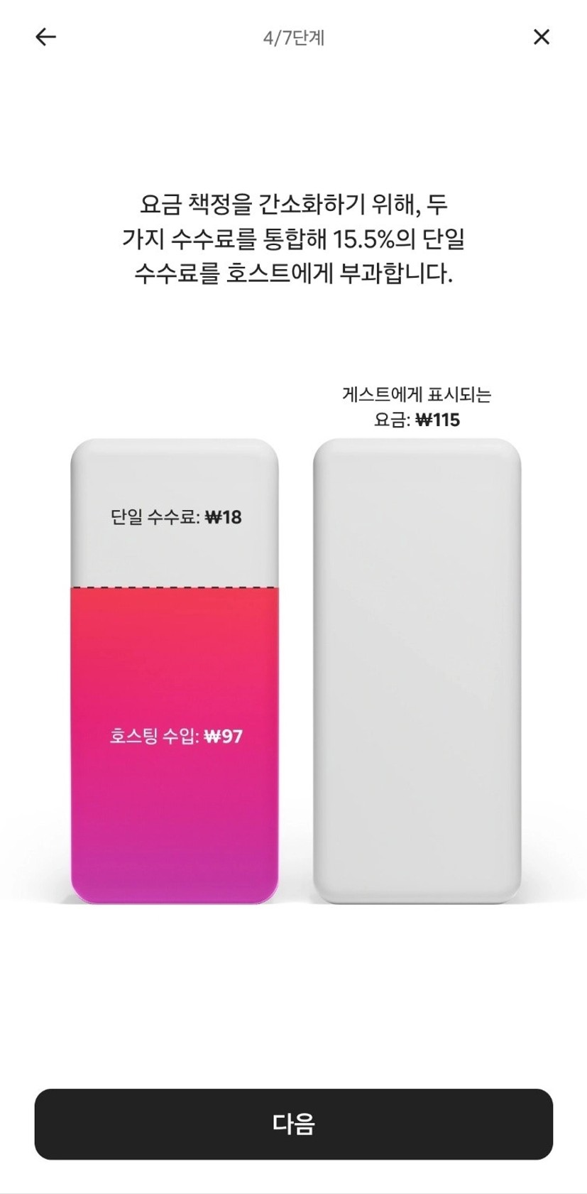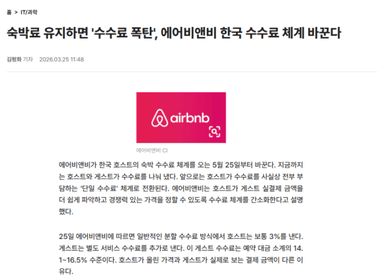 '๋จ์ผ ์์๋ฃ(Host-only fee)' ๋ชจ๋ธ์ ๋ณธ๊ฒฉ์ ์ผ๋ก ๋์ ํ๊ณ ์์ต๋๋ค.