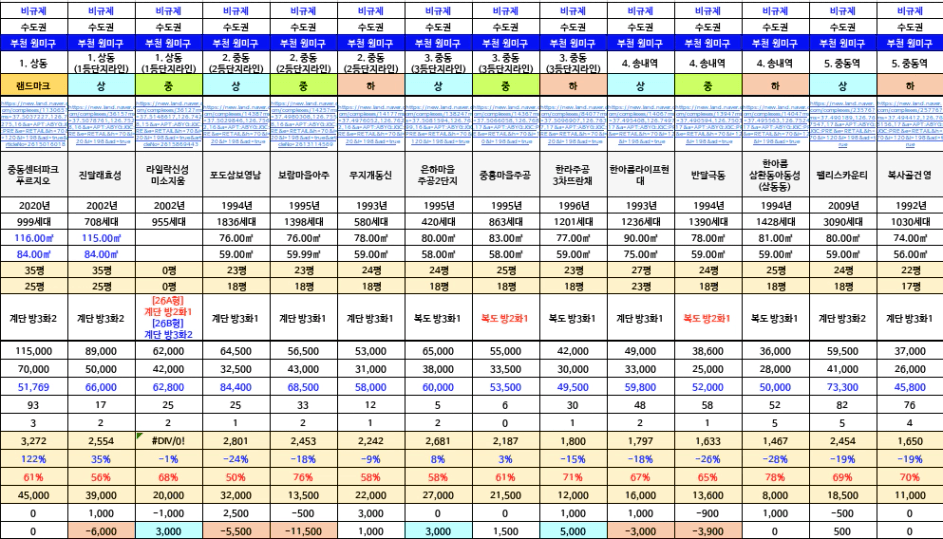 - 투자금 1억 초반~중반 : 선호도 중간~하위 생활권 단지들