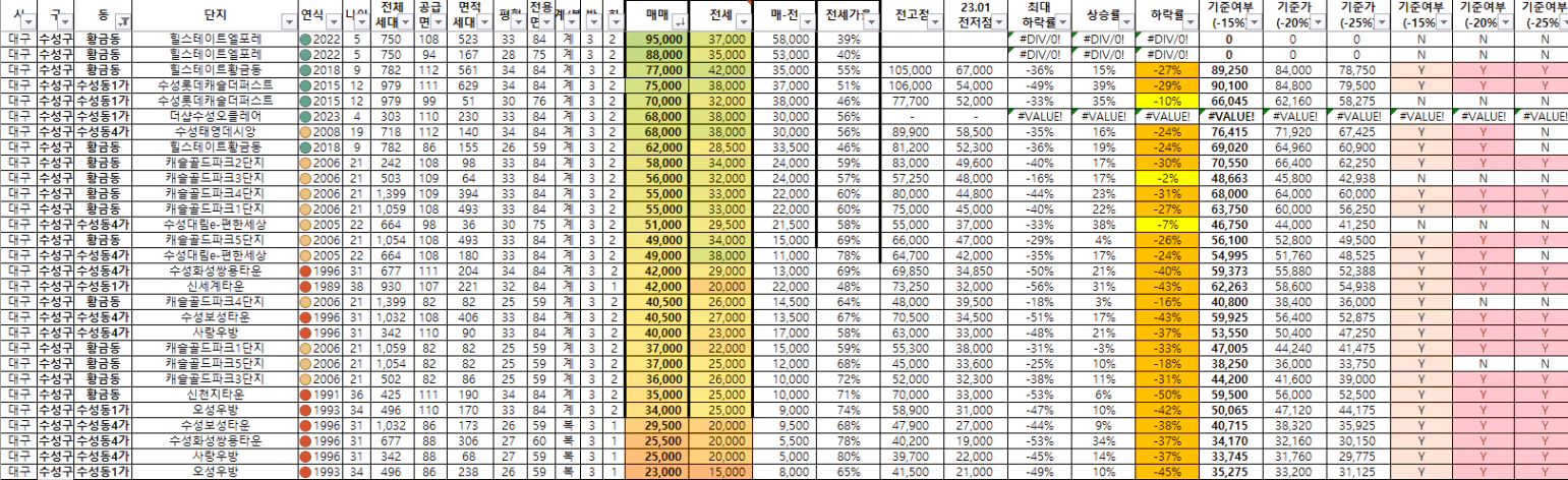 지난 1월대비 시세가 야금야금 몇천정도 올라있지만 구축은 거의 대부분 전고점대비 25%이상 하락한 가격.