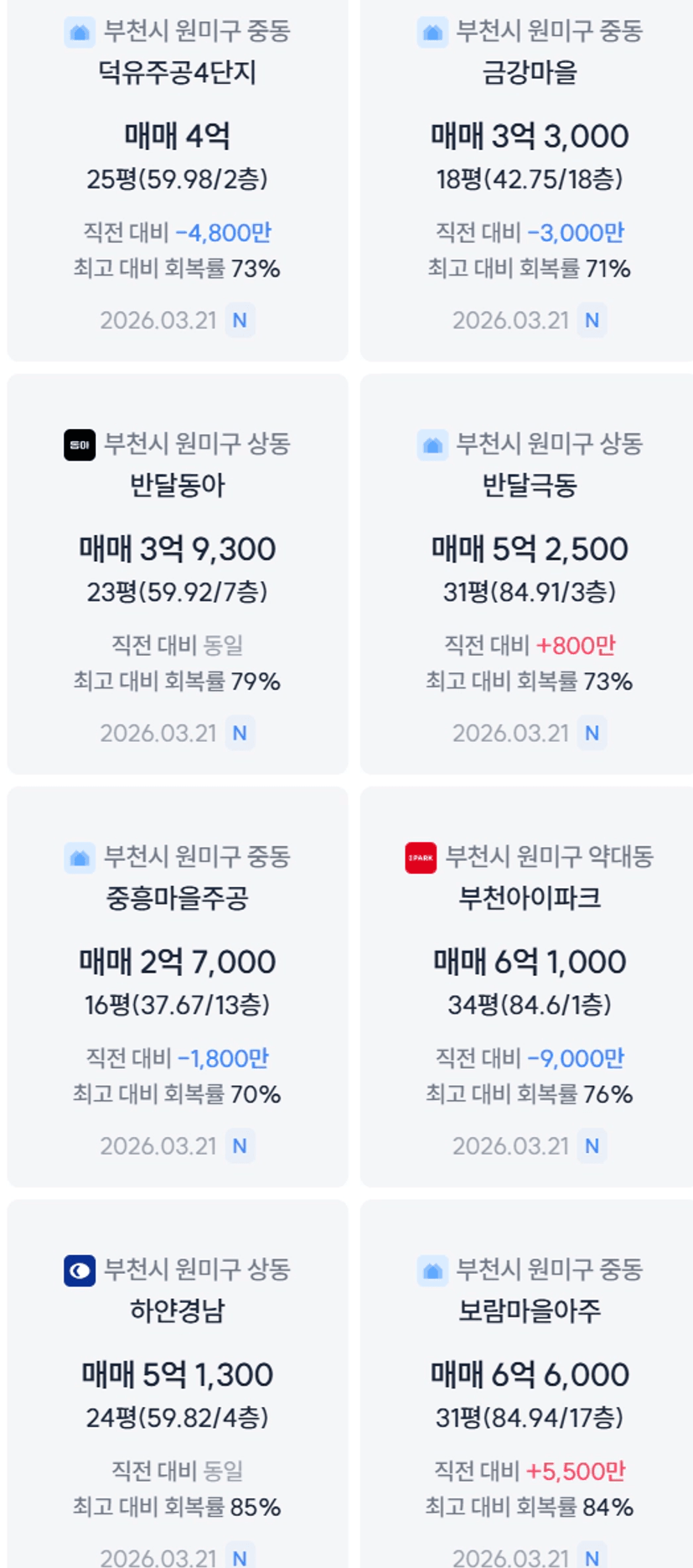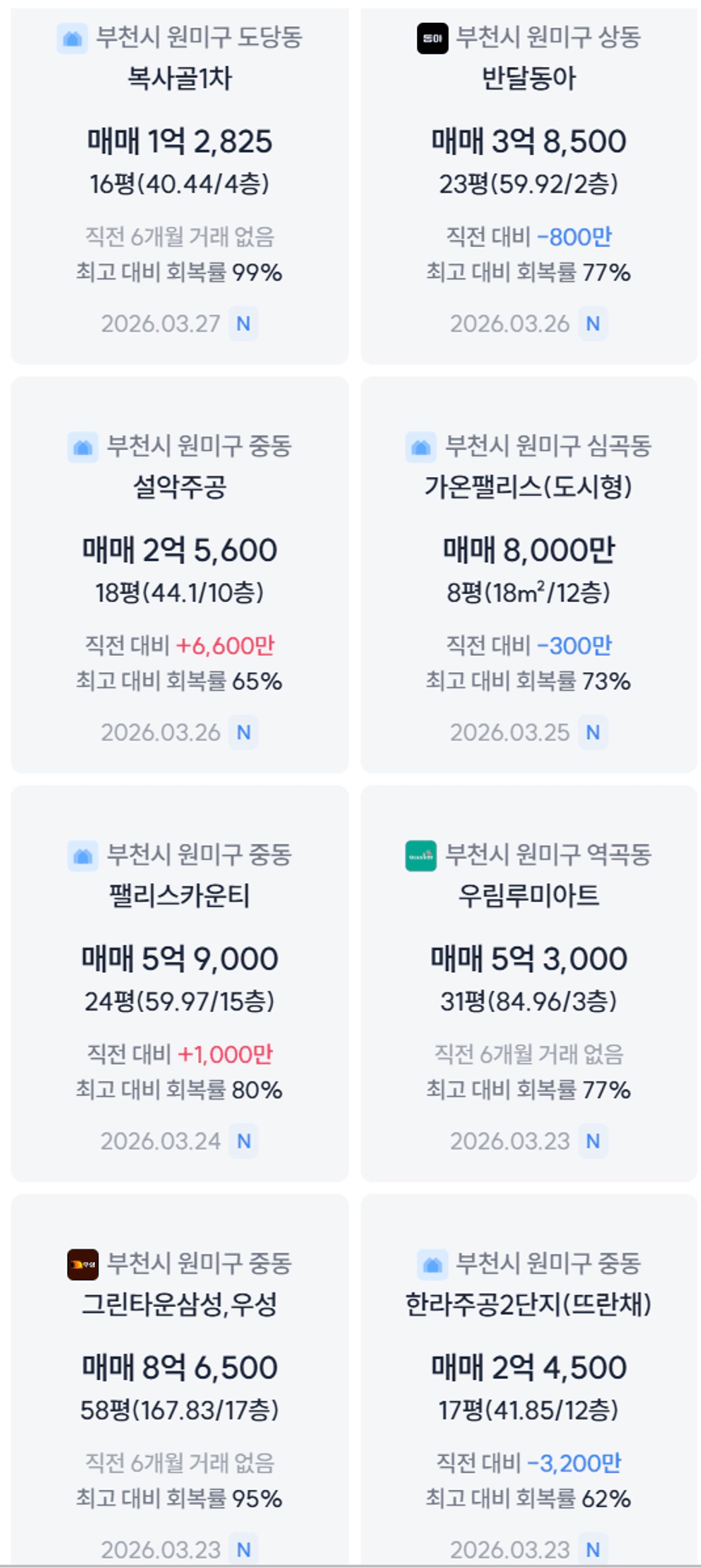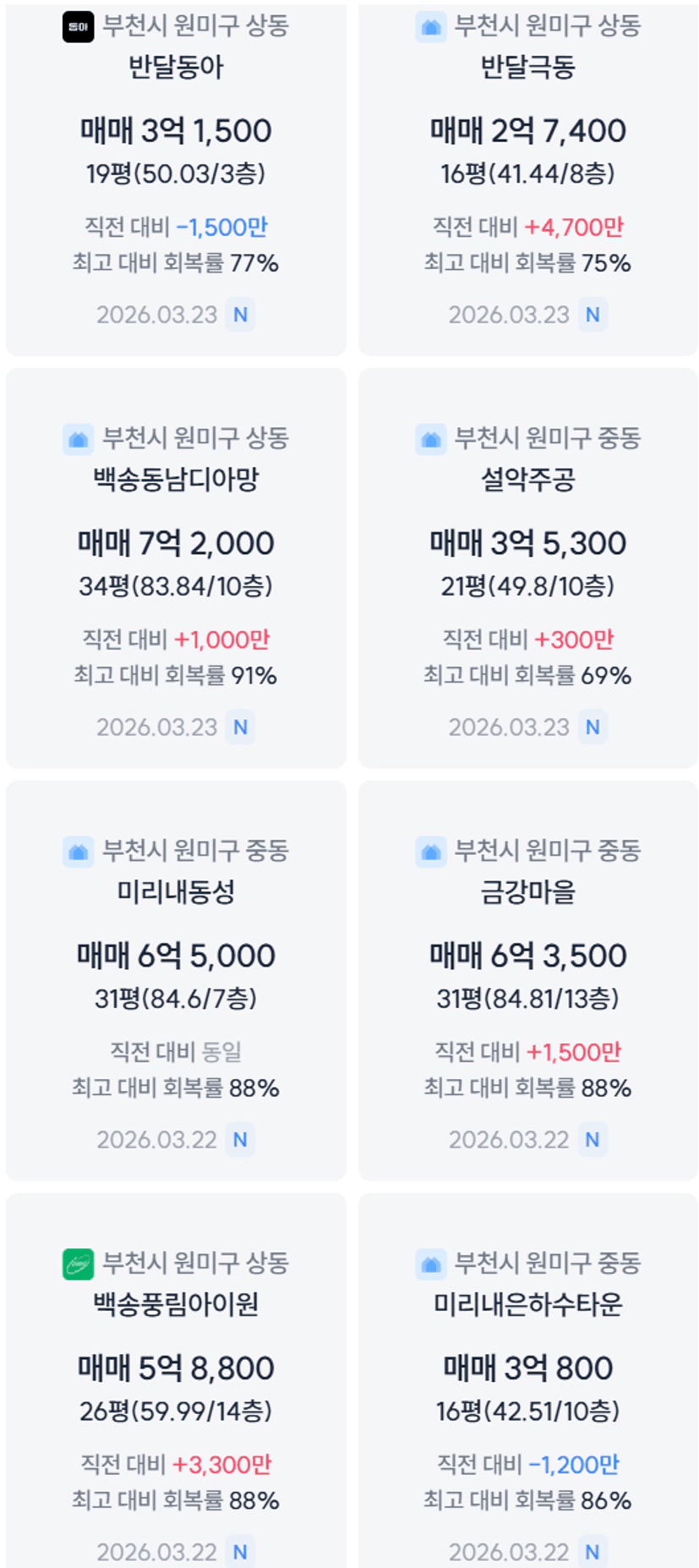행복한,푸른마을 8억초중 / 백송도 다정한보다는 낫긴한데 7억 중