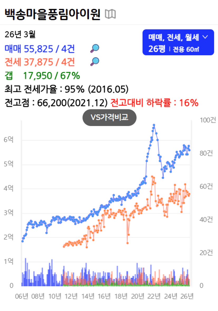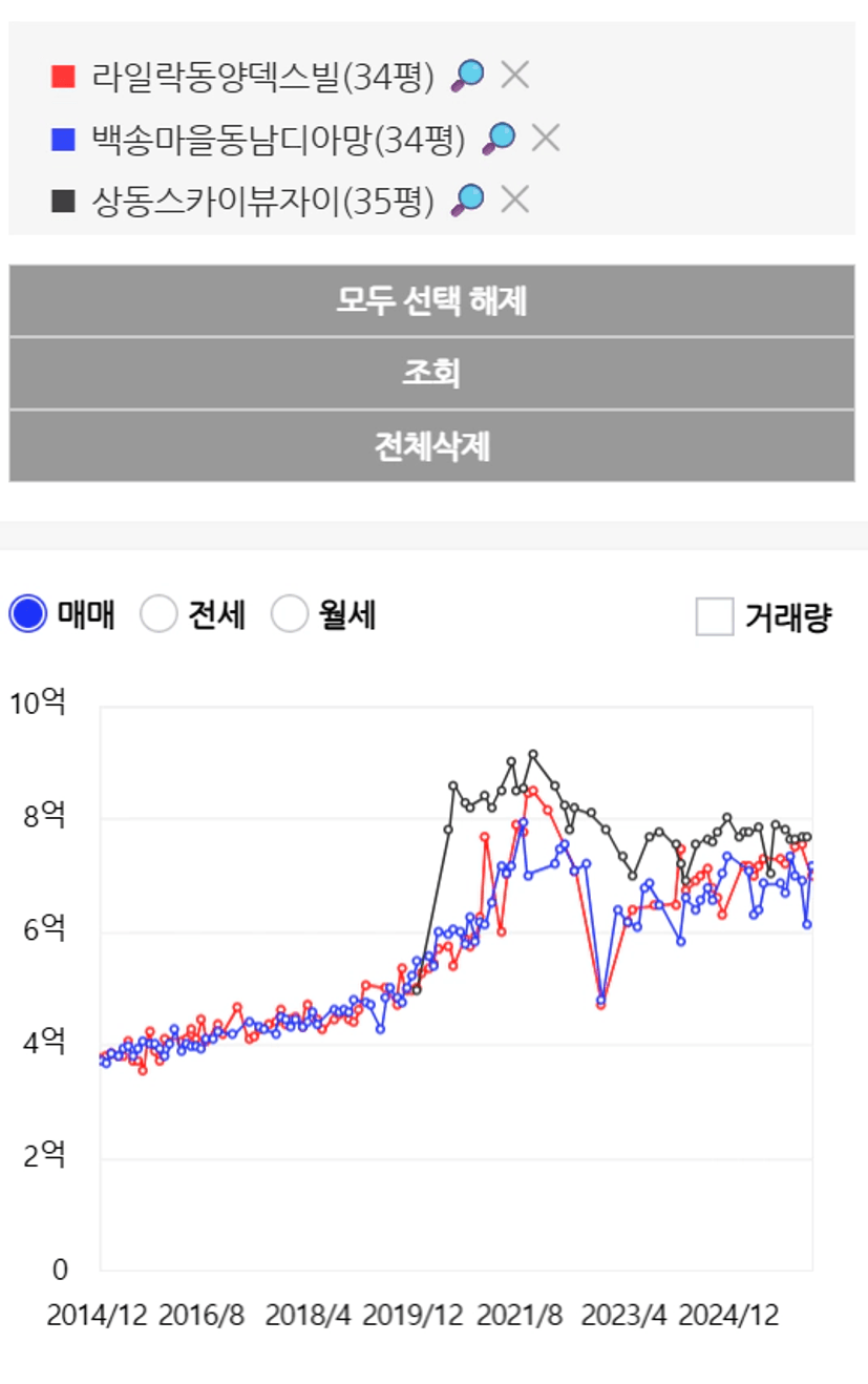 백송풍림 20평대만 있는데 아직 상승세가 가파르다. 조만간 6억 찍겠는데…? 7호선 가까운 동의 거래가 활발