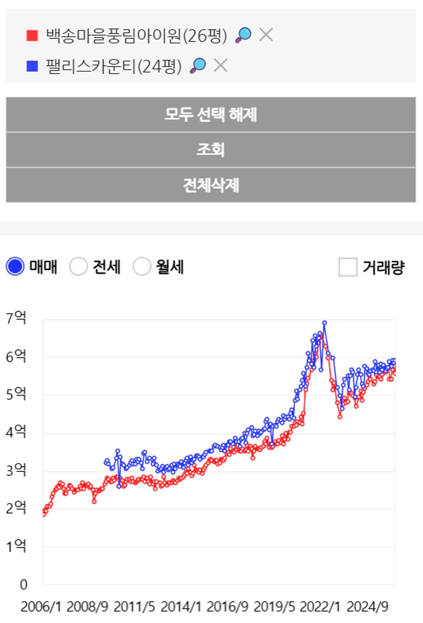 팰리스가 대단지 연식이 좋지만 백송풍림이 입지가 7호선 상권 접근성이 더 좋은 입지다.