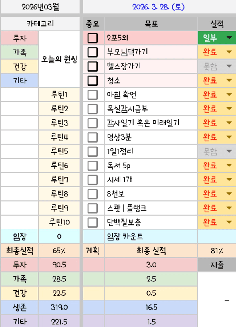 아슬아슬하지만 오늘도 1포3외할 수 있어 감사합니다. 오늘도 목표 달성한 나 자신 칭찬해!!