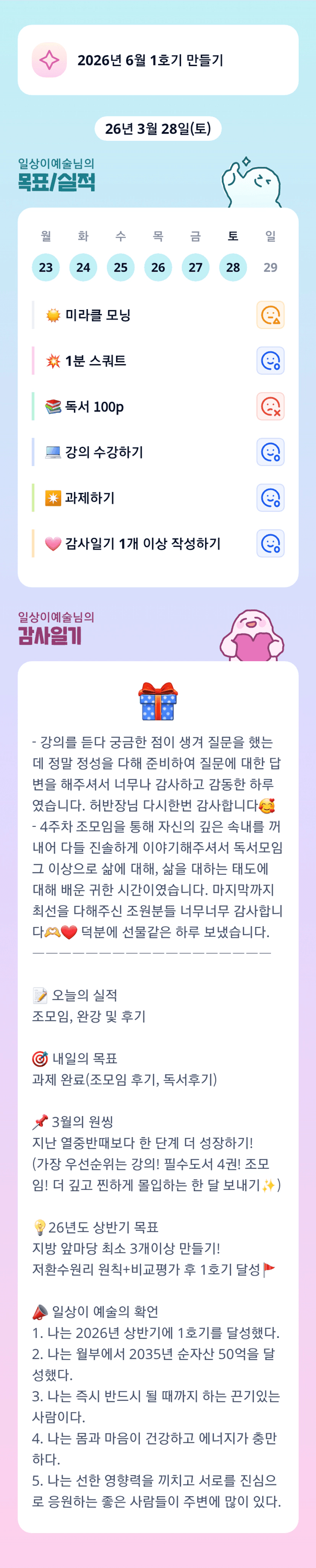 [열중49기 다독왕과 mvp에 4활을 건 조_일상이예술] 오하 튜터님과 함께한 조장튜터링 후기♡