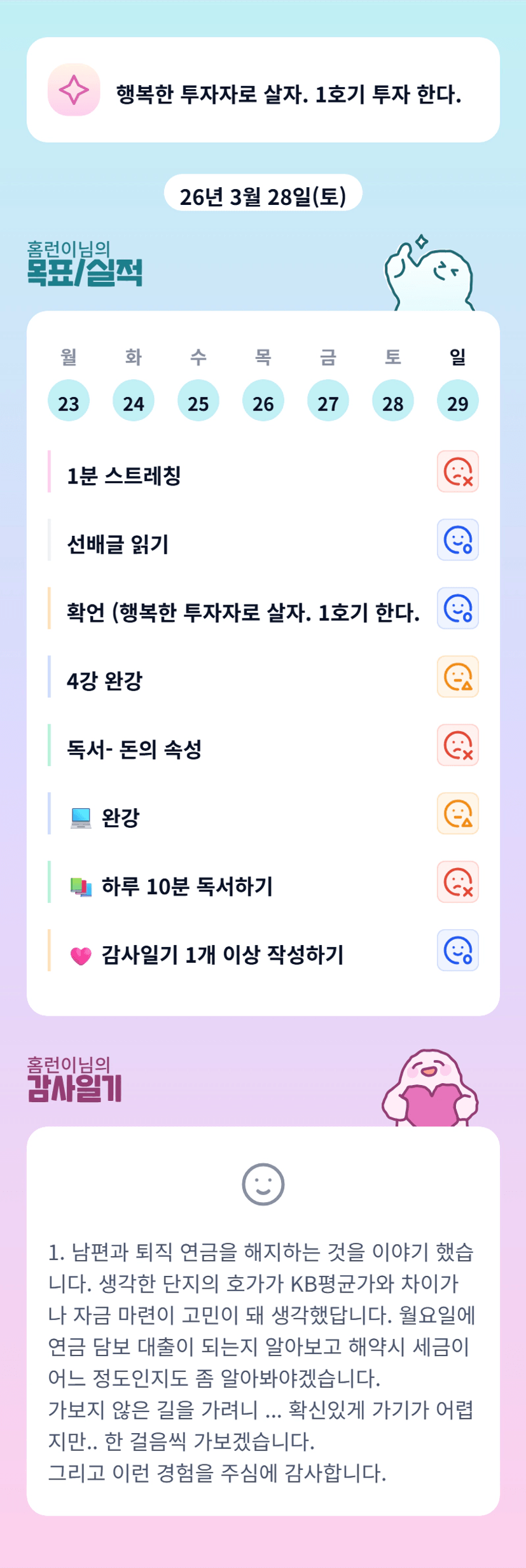 시일이 가까워짐을 느낍니다,홈런이님~👍🏻투코할때 연금관련 돈은 해지하지 말라고 하시더라구요. 노후의 자금까지 끌어다 집사면 위험하다고요. 연금담보대출도 이야기해 주셨어요. 저보다 젊으시니까 상황은 다를 수 있지만 해지하시기 전에 좀더 알아보시길요~💕청약저축도 한 명만 해지하고 한 명은 놔두었구요, 돈이 더 필요하면 청약담보대출도 있더라구요. 홈런이님 Q&A에도 문의해보세요. 연령대,상황도 이야기해야 좀더 정확한 조언을 주시긴 할거같긴해요😅홈런이님 화이팅이에요!