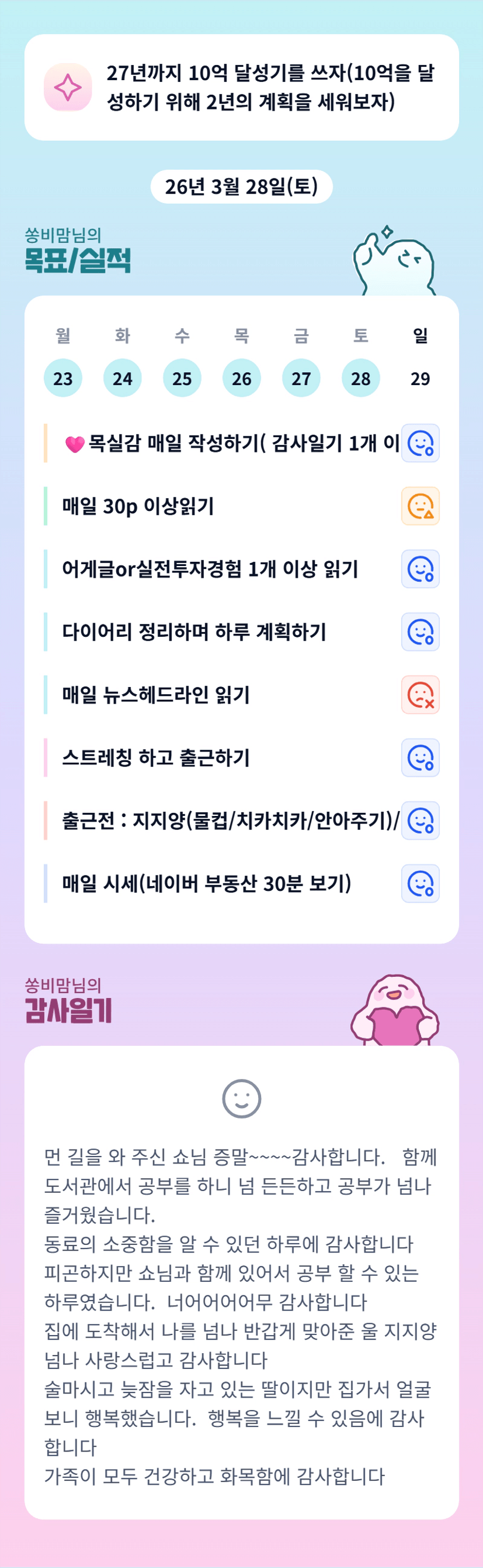 피곤함에도 할 일을 열심히 하면서 감사함과 행복함을 느끼는 쏭비맘님 굿굿^^