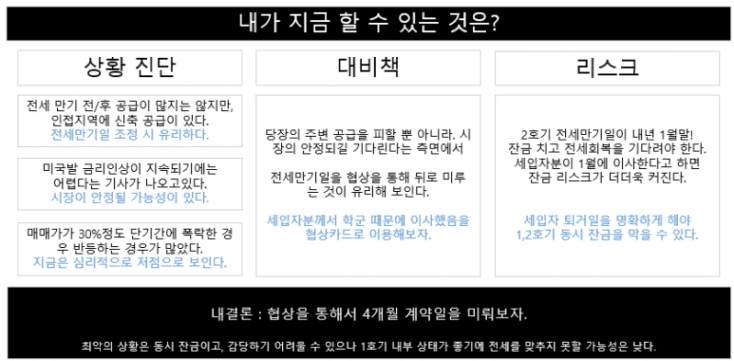공급량을 파악하고, 단기 시장상황을 예측하여 전세계약일을 4개월 미루고,