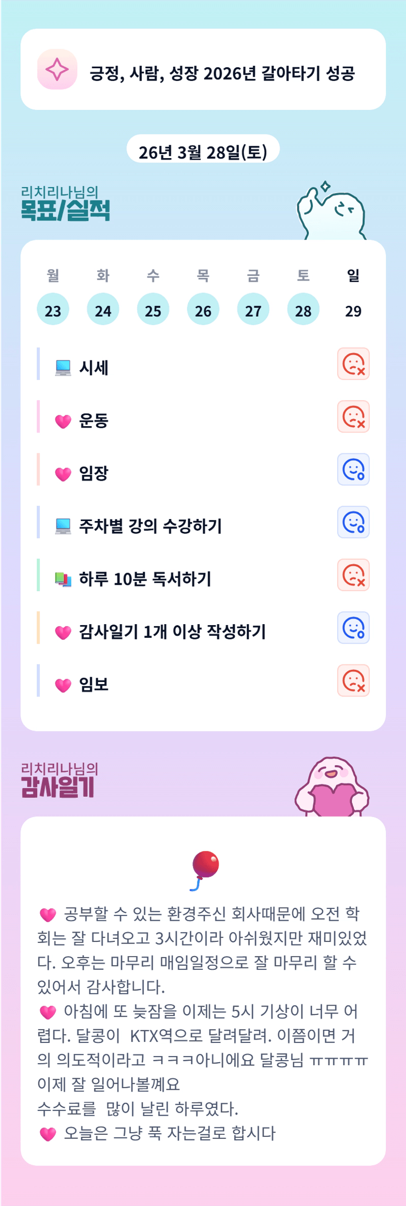 오늘은 그냥 푹 자는걸로!! ㅎㅎ 리나님 충전 잘하시고 4월 한달 재밌게 보내봐요 또 만나서 너무 반갑습니다😆