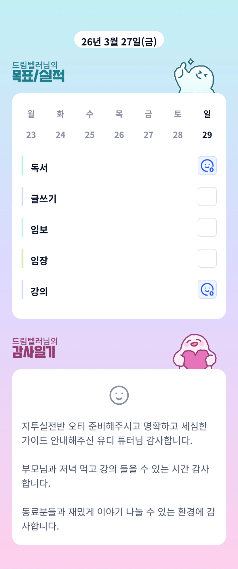 오~ 드림텔러님 지투기 들으시는군요^^ 저도 지투갈까 실전갈까 엄청 고민하다 실전으로 다시 처음부터 잡아가려고 선택했습니다^^ 오늘도 화이팅하세요!!!