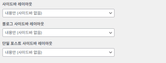 설정 : 워드프레스관리자페이지 ( 모양 - 사용자정의 - 레이아웃 - 사이드바 )