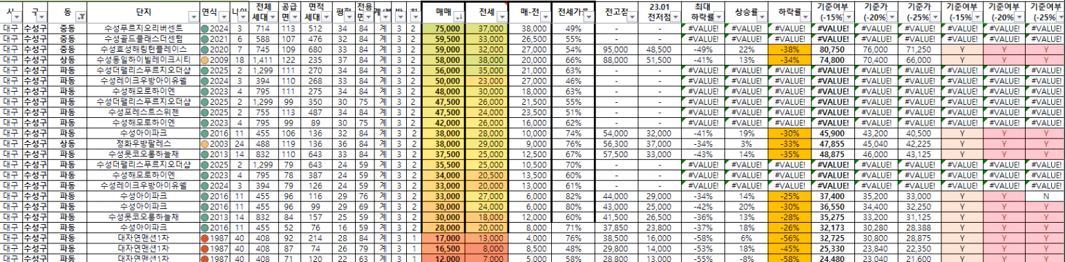 상동 중동은 수성동과 황금동에서 가깝고 중구 접근성이 뛰어나다 학군지와 인프라는 아쉽지만 연식이 좋은 것이 장점.