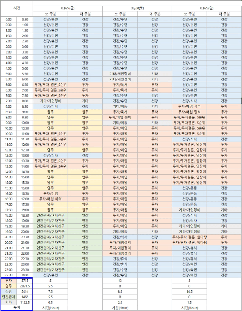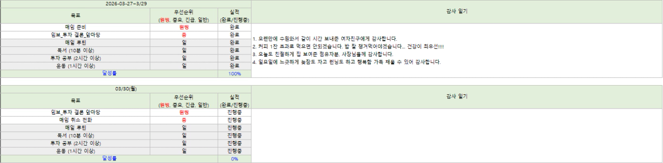 🌻3/30 목표, 3/27~3/29 실적 & 감사일기