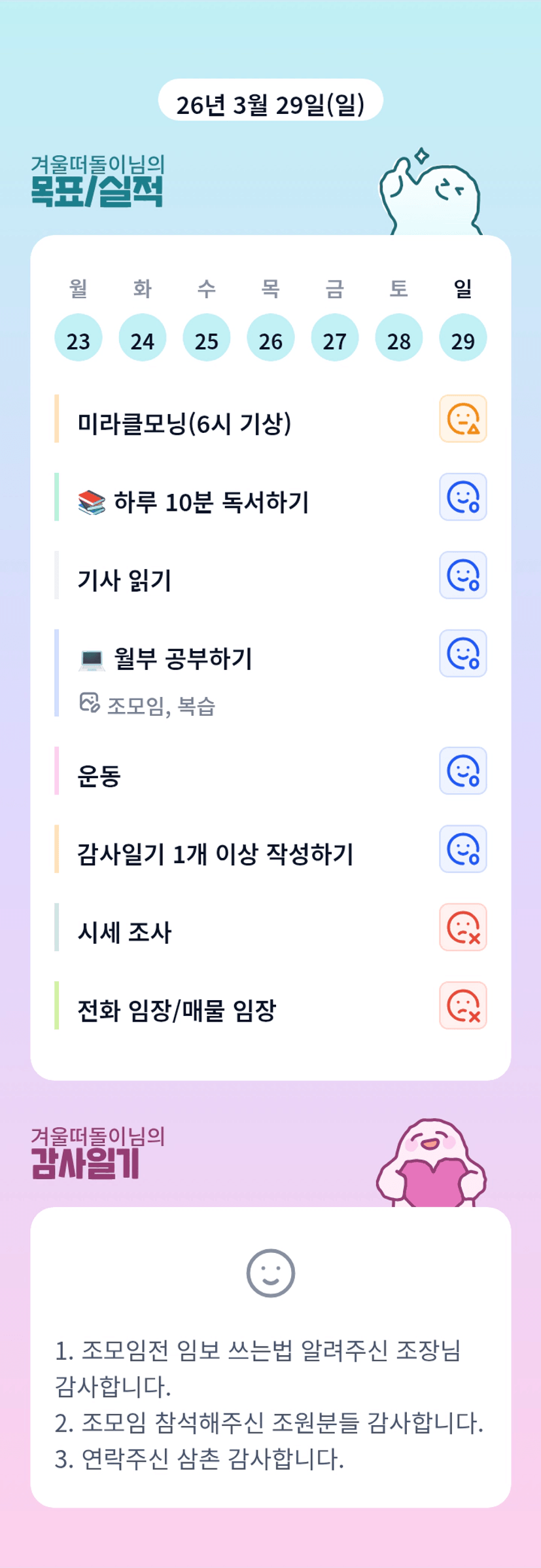 3주차 조모임 후기[실준51기 43최초! 전원n호기 성공! 겨울떠돌이]