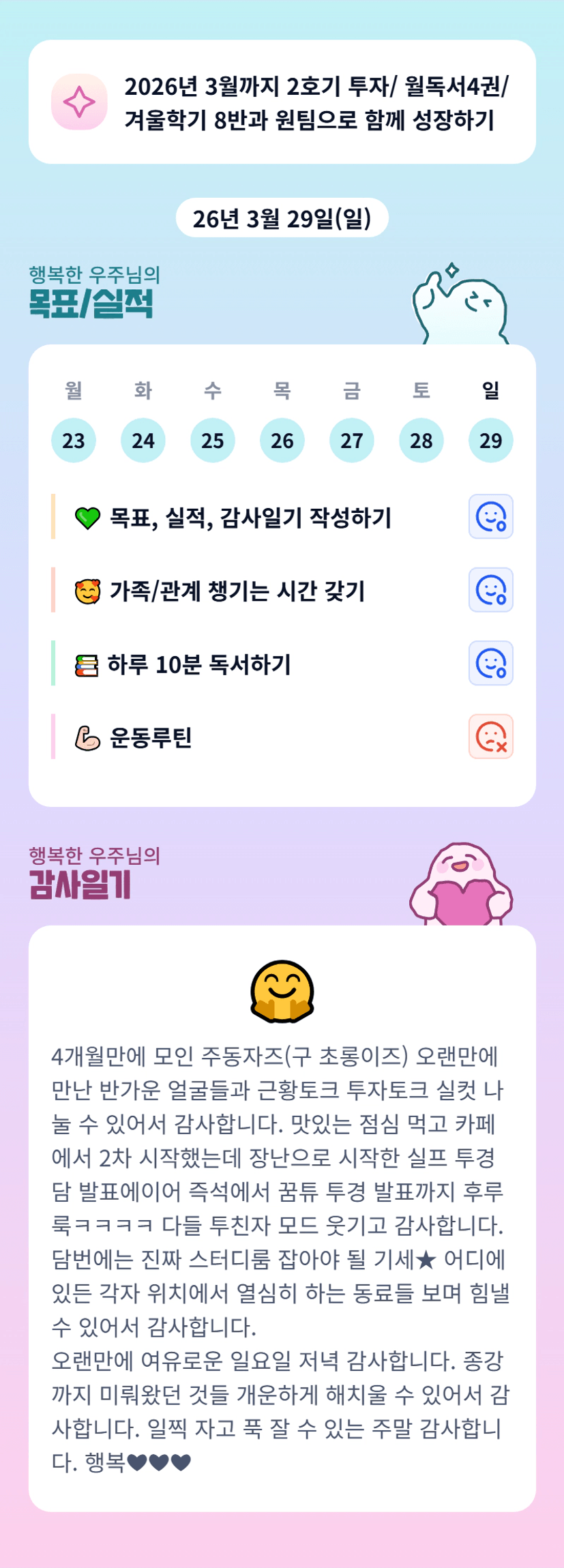 우량주식님 간단한 투경? 도 들어서 좋았습니다 ㅎㅎ 무럭무럭 자라길!!