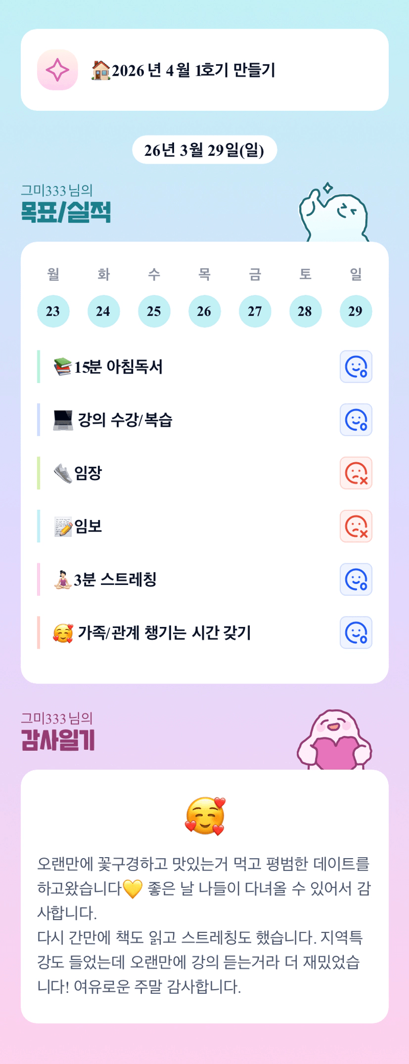 그미님 여유로운 주말~~ 팸데이도 적정한 보상도 꼭 하셔용 <3