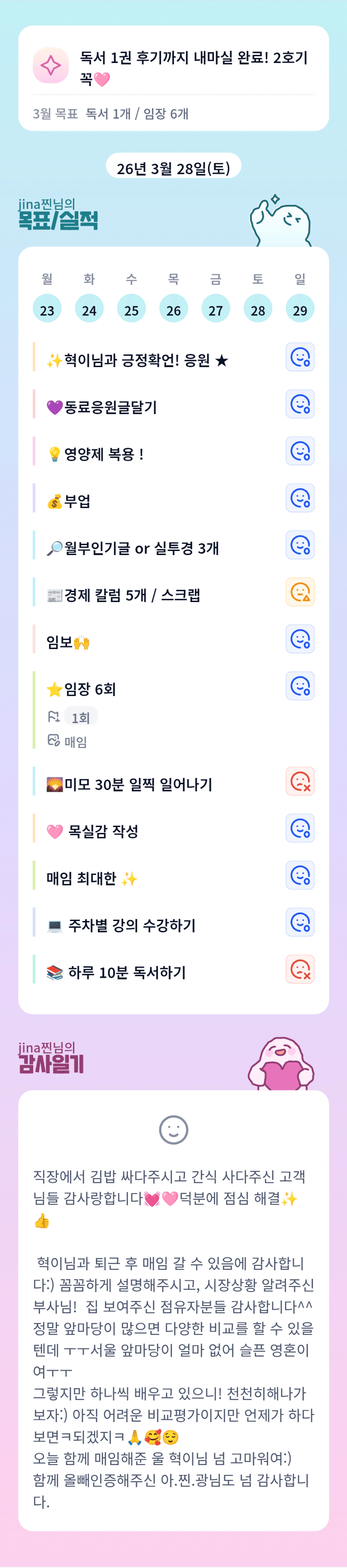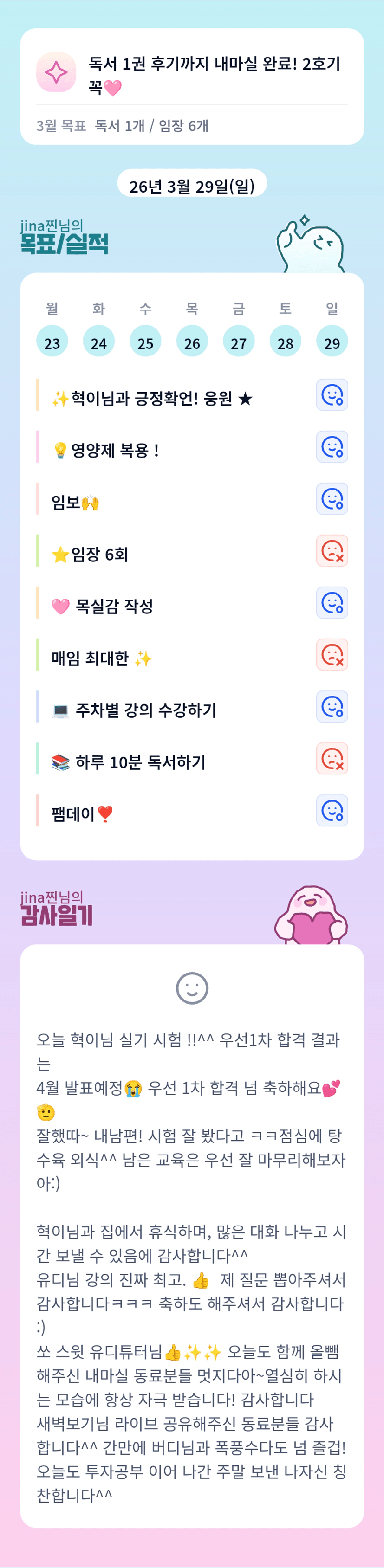 혁이님 1차 합격 축하포카!!!!! 열심히 사는 찐혁부부 쵝오!!!!!!! 지금도 잘하고 있는데 앞으로 더더더더 실력있는 투자자로 성장할 듯! 끼야호~~~