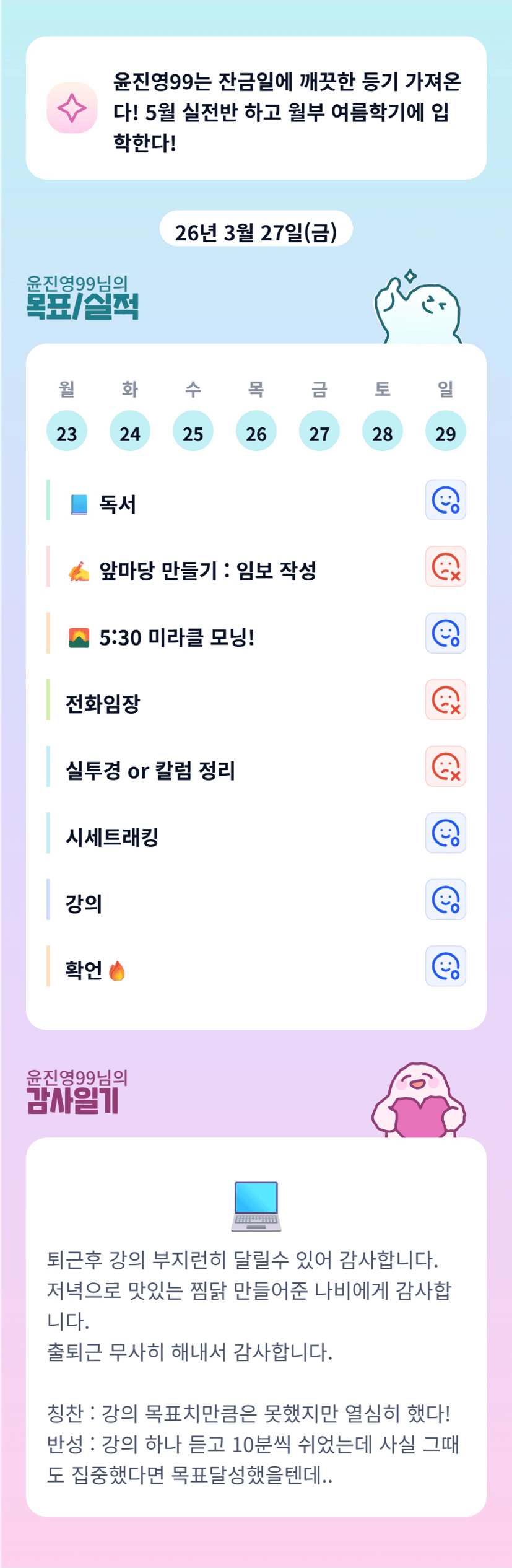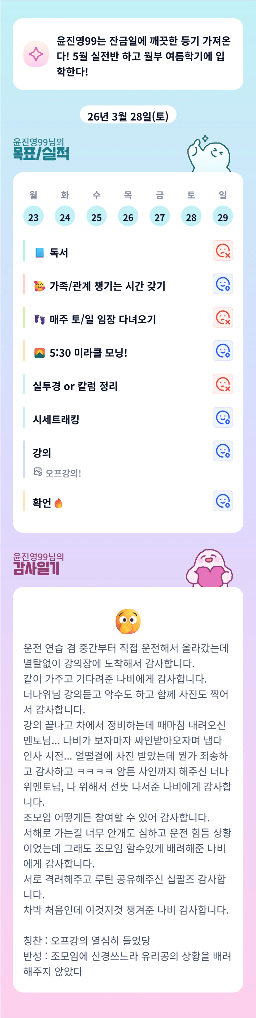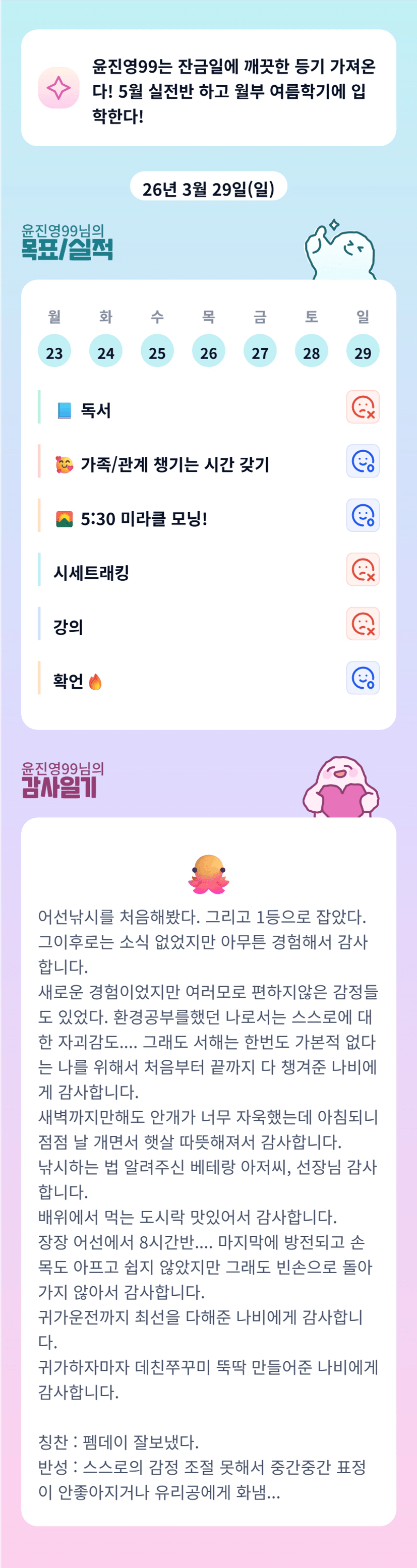 투자공부하며 유리공도 함께 챙기는것은 쉬운 일은 아닙니다! 진영님께서는 이미 잘하고 계신거 같아요!! 유리공이 늘 자신이 0순위임을 알게 해주는게 중요한 거 같아요!! 오늘도 파이팅 입니다 ❤️🔥