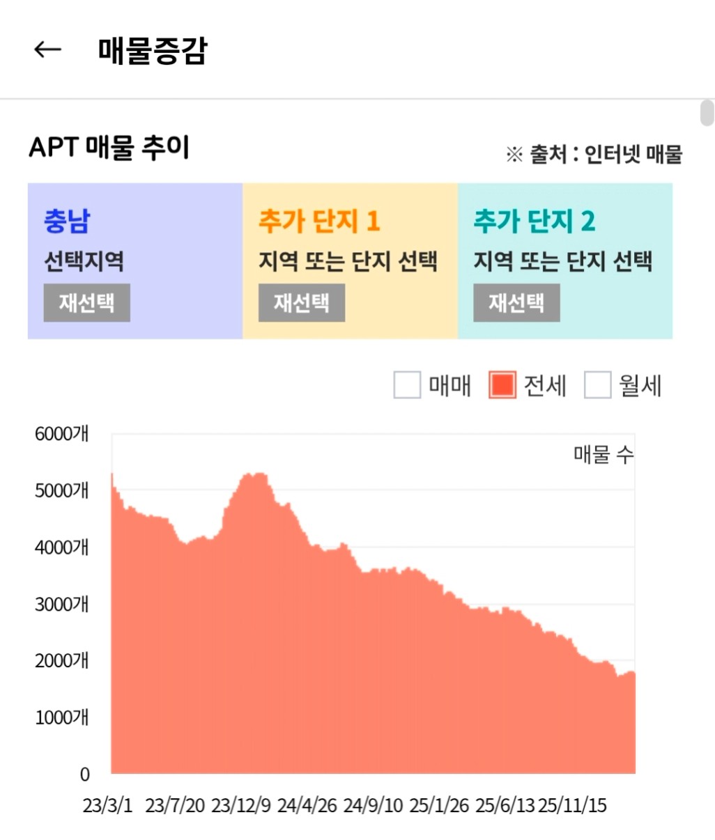 그나마 전세가 있는 곳이 충남
