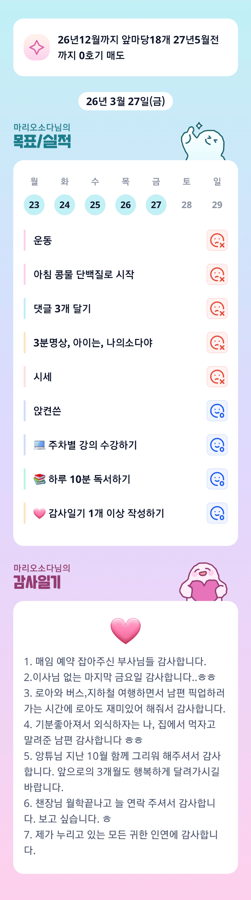 크 진짜 알찬 주말을 보내셨네요!! 완강에 매임까지!! 벌써 4월이라니! 4월도 빠이팅하시죠!!