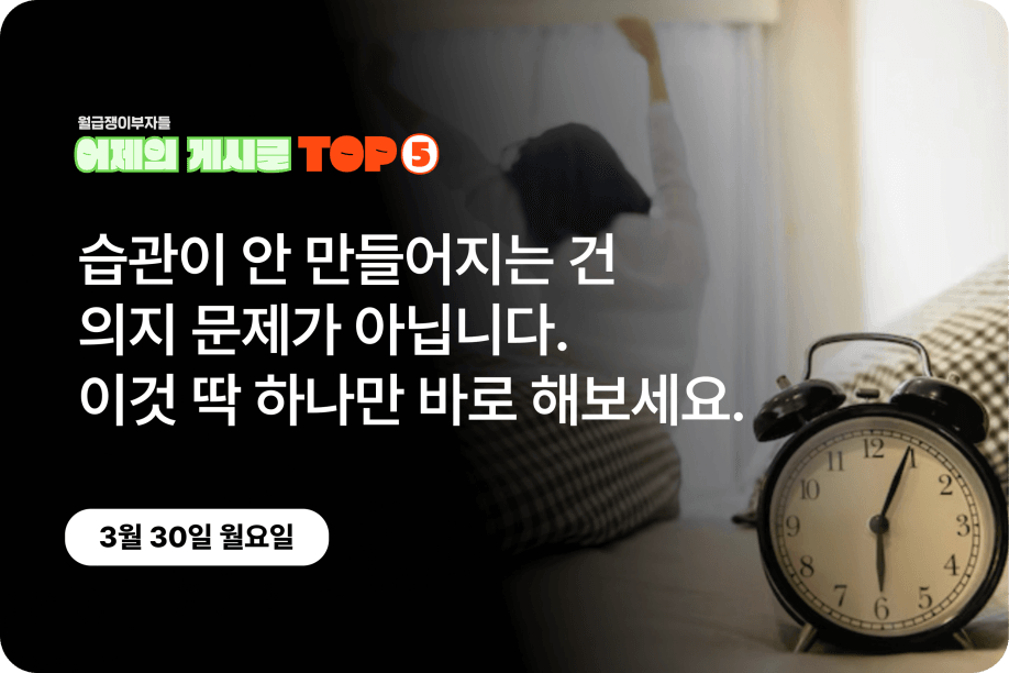 가장 반응이 좋았던 인기글만 담아 ‘어제의 게시글’ TOP5를 소개합니다.