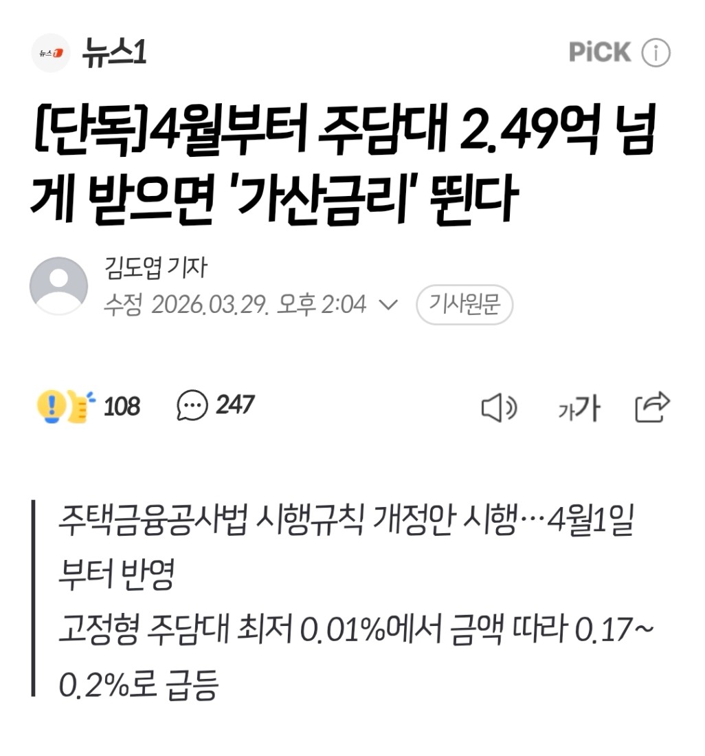 6월 8일 잔금일로 잡고 2억 5천 주담대를 받으려고 했는데 위와 같은 기사를 확인해서요.