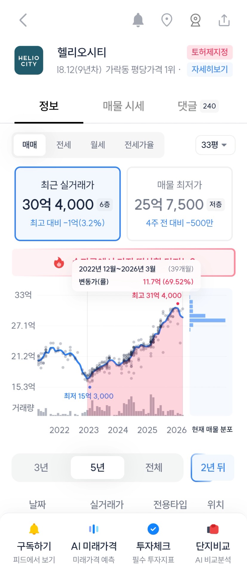 송파 매물은 확실히 늘어나고 있다. 이상하게 리센츠만 줄어들고 있었다.