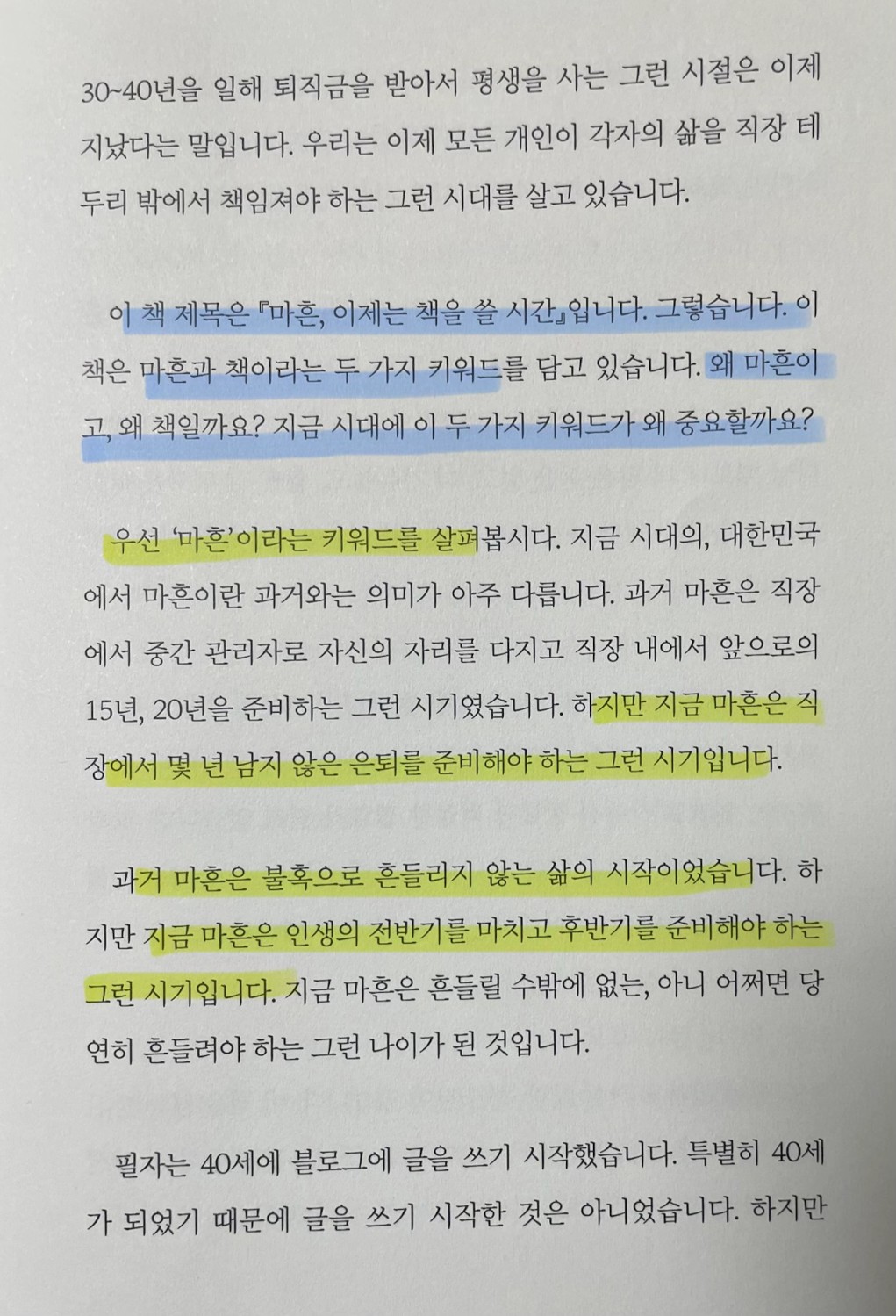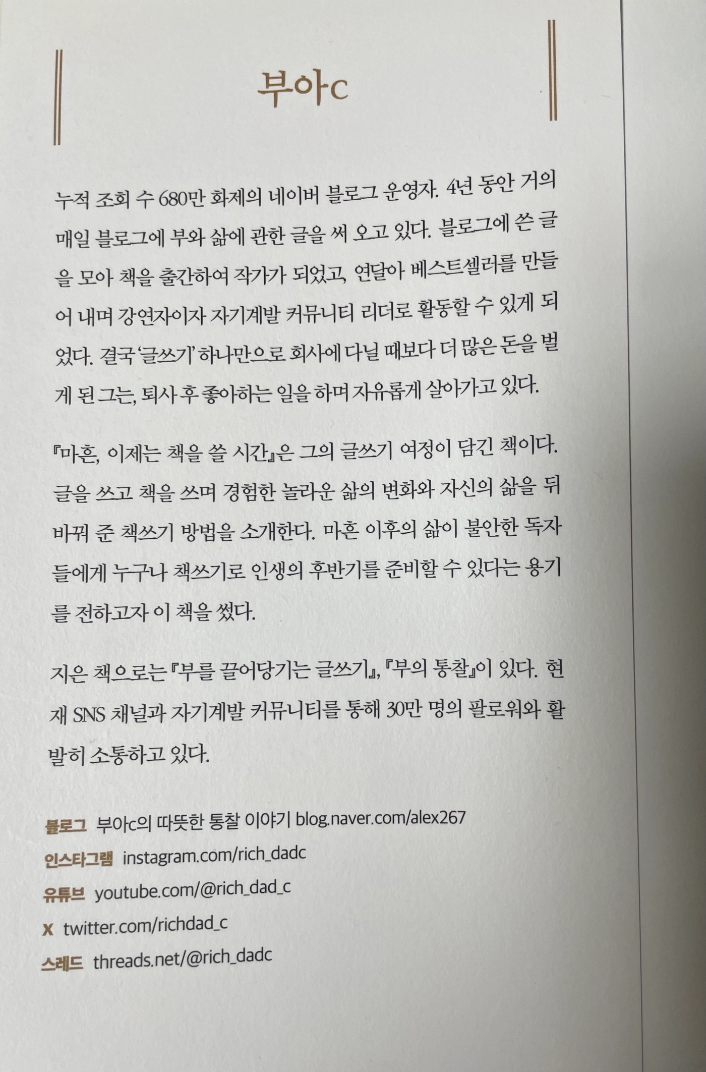 오늘 아침 독서는 부아c의 <마흔, 이제는 책을 쓸 시간>으로 시작합니다.