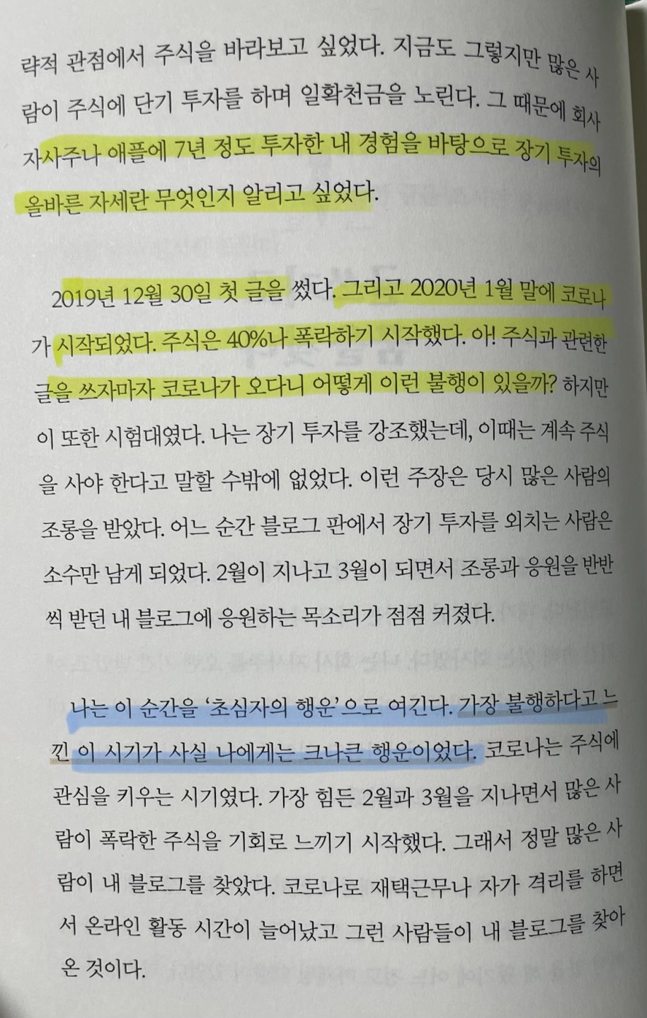 p.32 나는 이 순간을 '초심자의 행운' 으로 여긴다. 가장 불행하다고 느낀 이 시기가 사실 나에게는 크나큰 행운이었다.