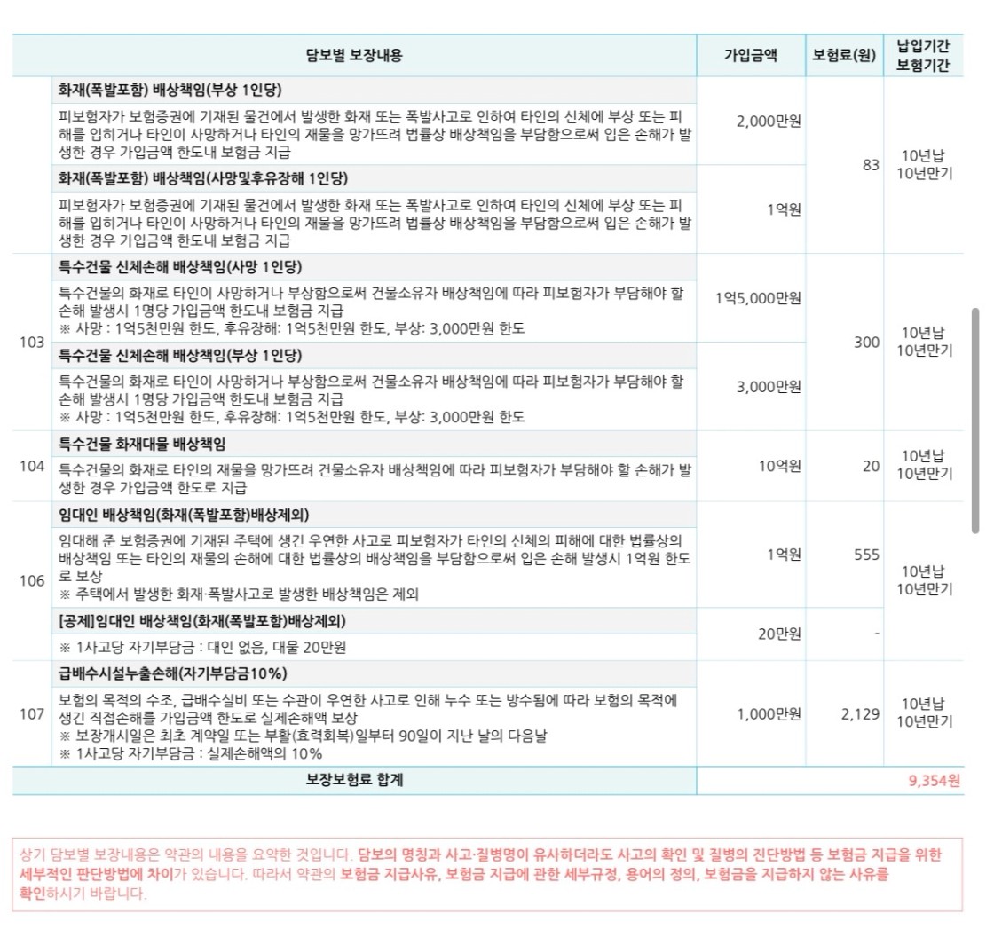 도도님 반가워요!^^ 저에요 ㅎㅎ 화배책은 1급 건물이면 20억까지 가입한도 올릴 수 있고요. 중요한 담보인 급배수. 화재손해. 임대인 배상책임. 화배책 등 다 들어갔고요. 보통 아파트가 30년이 지나면 급배수와 배상책임 가입이 어려우니 장기로 가져갈 생각이라면 보장기간을 20년으로 바꿔도 좋을 듯요. 10년이내 매도할거면 상관없고요~ 최근에 저도 가입해서 정보 남깁니다~