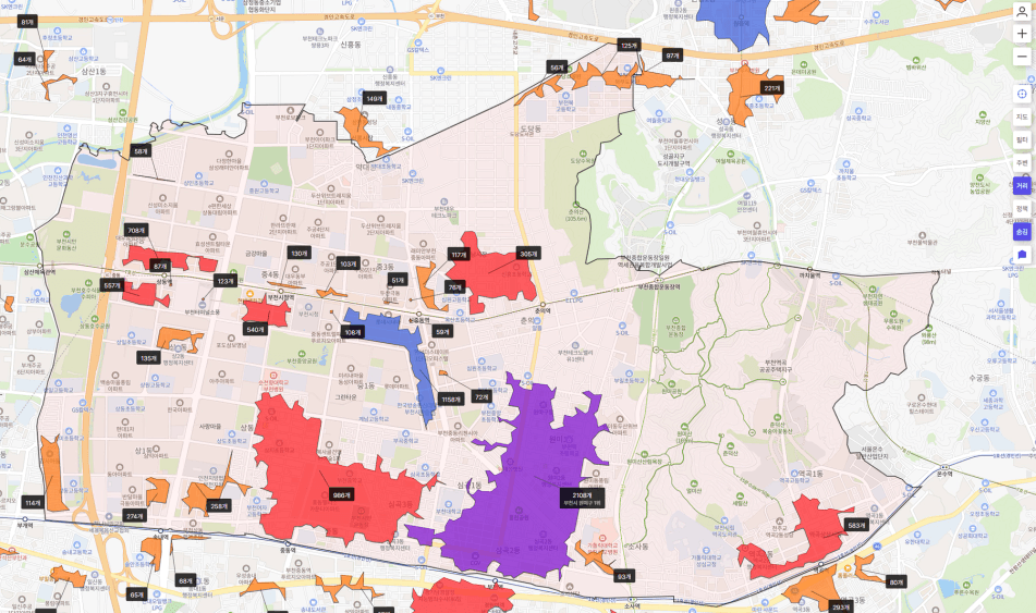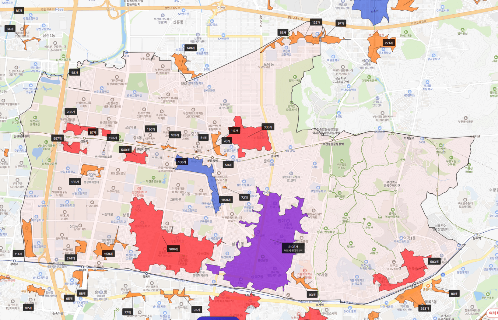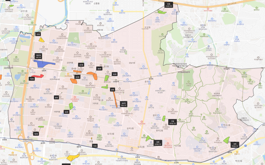 그러면 지도 위에 상권이 활성화됩니다.