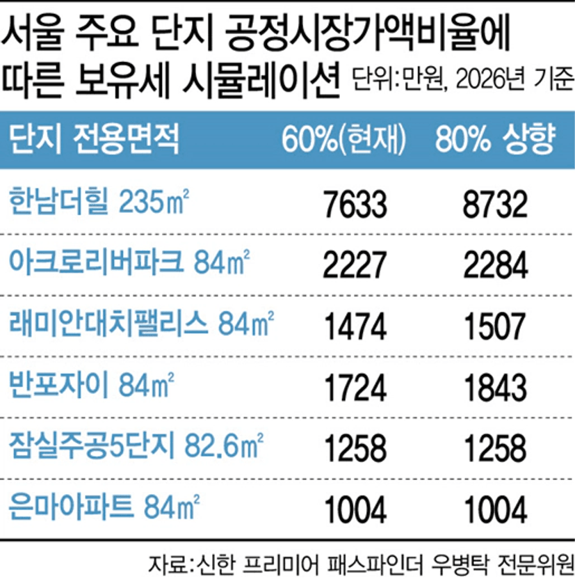 ■공정시장가액비율 60→80% 상향땐 한남더힐 보유세 1099만원↑