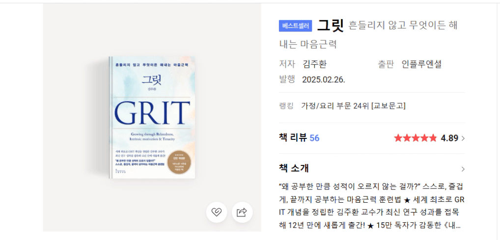 그릿이 높은 사람들은 목표를 향해 나아가는 과정에서 쉽게 포기하지 않는다는 점이 인상 깊었다. 작은 한 발자국이라도 꾸준히 내딛으며, 그 과정에서 부족한 부분을 채우고 탁월성을 만들어 간다는 점이 그릿의 핵심이라고 느꼈다.