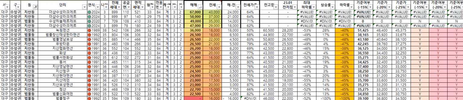 범물동과 지산동에 2개의 신축이 있는데 5억에서 6억대의 가격을 형성하고 있다