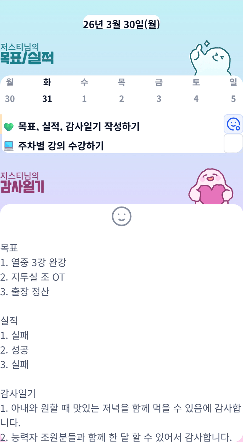 저스티님 한달 동안 잘 부탁드립니다~ 이번주도 빠이팅하세요!