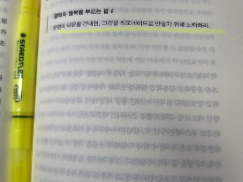 : 생각을 바꾸면 엄청난 효과를 가지고 온다. 생각을 바꾸면 걱정, 두려움, 다량한 질병을 극복하고 인생을 변화 시킬수 있다는 사실을 알게 되었다. 1.즐겁게 생각하고 행동하라. 그러면 즐거워질 것이다. 2.적에게 앙갚음하려 들지 말라. 그래 봐야 적보다 자신에게 더많은 상처를 안길 뿐이다. 아이젠하워 장군처럼 행동하자. 우리가 좋아하지 않는 사람을 생각하는데 단 1분도 낭비하지 말자. 3. 감사할 줄 모르는 사람들 때문에 마음 쓰지 말고, 오히려 당연하게 받아들이라. 행복해질수 있는 유일한 방법은 감사를 바라지 말고 ‘주는 기쁨’을 얻기 위해 베푸는 것이라는 사실을 기억하라. 4.내가 가진 문제가 아니라 받은 복을 헤아려 보라. 5.다른사람을 모방하지말라. 나를 찾고 내모습대로 살아가라. 6. 운명이 레몬을 건네면, 그것을 레모네이드로 만들기 위해 노력하라. 7. 다른사람에게 관심을 가짐으로써 자신을 잊으라. 날마다 다른사람의 얼굴에 기쁨의 미소가 떠오르도록 선행을 베풀라.