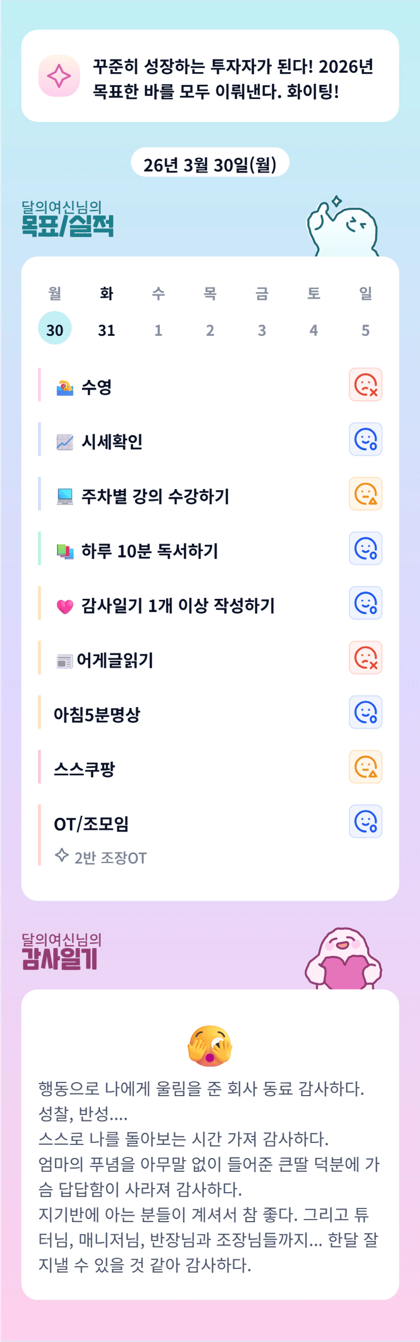 달님 조장OT방에 계시길레 속으로 혼자 너무 반가웠어요 ㅎㅎㅎ 이번 한 달 화이팅이에요 :)💪🏻